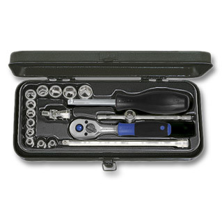 Deli za pritrditev in pogon ustrezajo DIN 3122 / 3123 nastavki nasadnih ključev ustrezajo DIN 3124. Notranji in zunanji 4-kotniki ustrezajo DIN 3120. Vsi deli v čvrsti škatli iz jeklene pločevine z oblikovanimi vložki iz umetne mase.