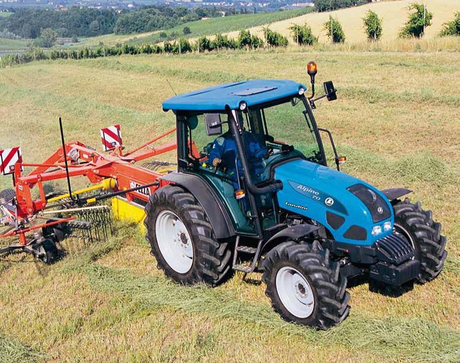 Kompaktni traktorji serije Alpine so novost v Landinijevi ponudbi od leta 2004 dalje. Opremljeni so z novo serijo vodno hlajenih motorjev Perkins 804 z močjo od 69 KM do 82 KS, katerih karakteristika je izredna elastičnost, tiho delovanje in varčnost pri porabi goriva. Navedeno uvršča traktorje Alpine kot idealne za uporabo v transportu, spravilu sena in ostale krme kot tudi pri opravilih v nasadih in medvrstnih opravilih. Odlika traktorjev je na novo razvita ergonomsko oblikovana kabina, z izredno preglednostjo in protihrupno zaščito, moderen in enostavno zasnovan menjalnik z enoploščno suho pogonsko sklopko. Omogoča pa tudi zmanjšanje moči traktorja pod obremenitvijo za približno 20%. Traktorji so opremljeni z neodvisnim integralnim zavornim sistemom na vsa 4 kolesa z diski, hlajenimi v olju, kar poudarja varnost pri delu. Izvedba GT z nižjim težiščem in nižjo skupno višino traktorja ter za 4 cm krajšo medosno razdaljo omogoča uporabo traktorjev Alpine GT na strmejših področjih ali za medvrstno obdelavo v nasadih. Možna je najmanjša možna delovna širina 158 cm (zadnje pnevmatike 380/70R28). Traktorji Landini Alpine so voljo tudi z menjalnikom Power Shuttle, katerega značilnost je dvojna večploščna sklopka v oljni kopeli in kateri omogoča hidravlično menjavo smeri vožnje in menjavo vozne sklopke s elektro-stikalom na prestavni ročici. Skupaj z Boschevim elektronskim krmiljenjem zadnjega hidravličnega dvigala omogoča enostavno upravljanje in vrhunsko ergonomijo za vsakega traktorista.