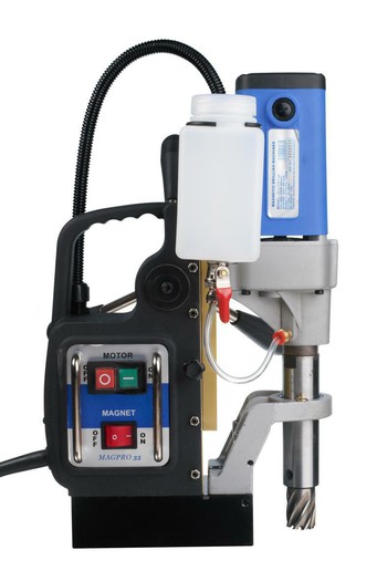 Magnetni vrtalni stroj JEPSON MAGPRO 35 * Enostavno rokovanje s podajalno ročico * Kronsko vrtanje od fi 12 do fi 35 mm * Vrtanje v polno fi 13 mm * Set v kovčku z varovalno verigo in orodji TEHNIČNE KARAKTERISTIKE: * Kronski svedri [mm] fi 12-35 mm * Maks.vrtanje v polno fi x G [mm] 13 mm x 110 mm * Dimenzija magneta [mm] 165 x 80 mm * Moč magneta [N] 15.000 N * Motor - priključna moč 1100 W * Teža [kg] 12 kg