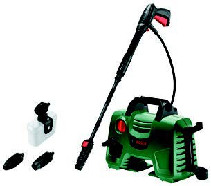 visokotlacna pištola, brizgalna cev, šobi z nastavljivim pahljacastim in z vrtljivim curkom, visokotlacna šoba za nanos cistila (450 ml), 5 m visokotlacna cev, vodni filter